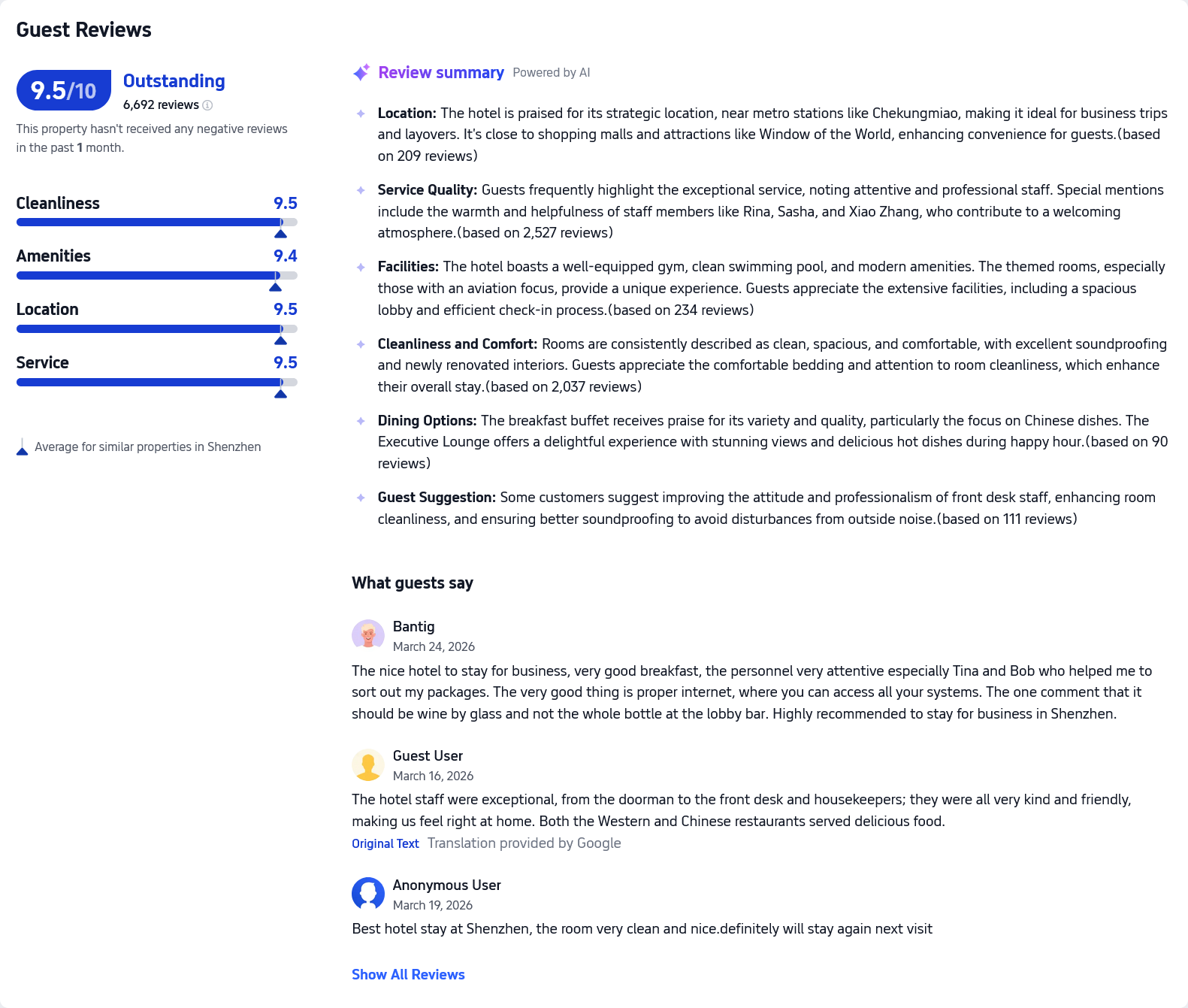 福田区の中心部に位置する深センエア・インターナショナルホテルは、深南大道沿いに佇む格式高い5つ星ホテルです。車公廟地下鉄駅や主要観光スポットへのアクセスも抜群。都心からわずか数分の好立地で、都会の利便性と静寂な快適さを両立させています。ホテルは、洗練された建築デザイン、屋内プールをはじめとする最新設備、そして名高いパナッタ・フィットネスセンターを誇ります。ビジネス旅行者にもレジャー旅行者にも最適な深センエア・インターナショナルホテルは、深センで最も活気のある地区の一つで、世界クラスのアメニティと卓越したホスピタリティを提供します。.