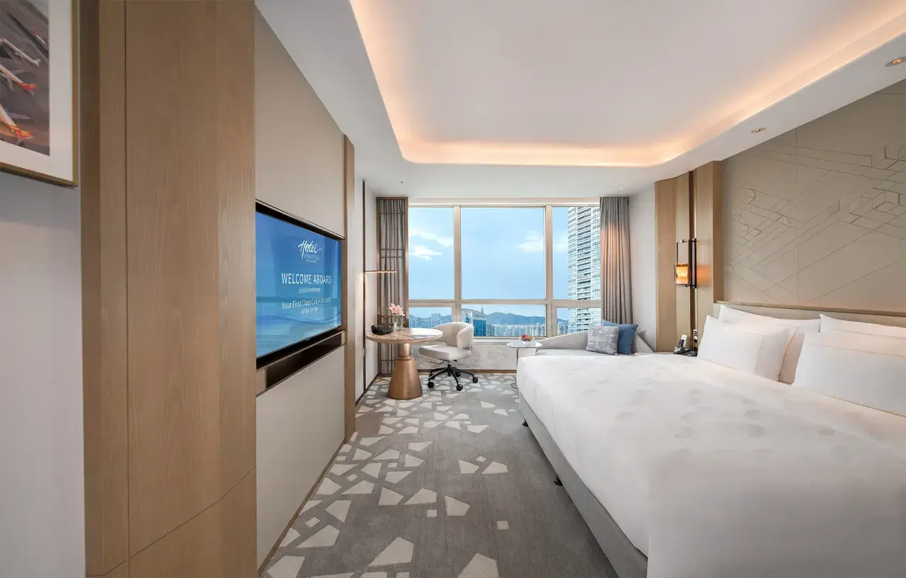 ようこそ 深センエアインターナショナルホテル, 戦略的に立地する、一流の5つ星高級ホテル 中国広東省深セン市福田区深南大道6035号. この名門ホテルは、深センで最も人気のある宿泊施設のひとつとして、現代的な優雅さ、世界クラスのアメニティ、そして卓越したホスピタリティサービスが見事に融合した、他に類を見ない空間を提供しています。ビジネス交渉、レジャー観光、国際会議など、深センを訪れる目的を問わず、当ホテルは滞在に最適な安息の地となるでしょう。.